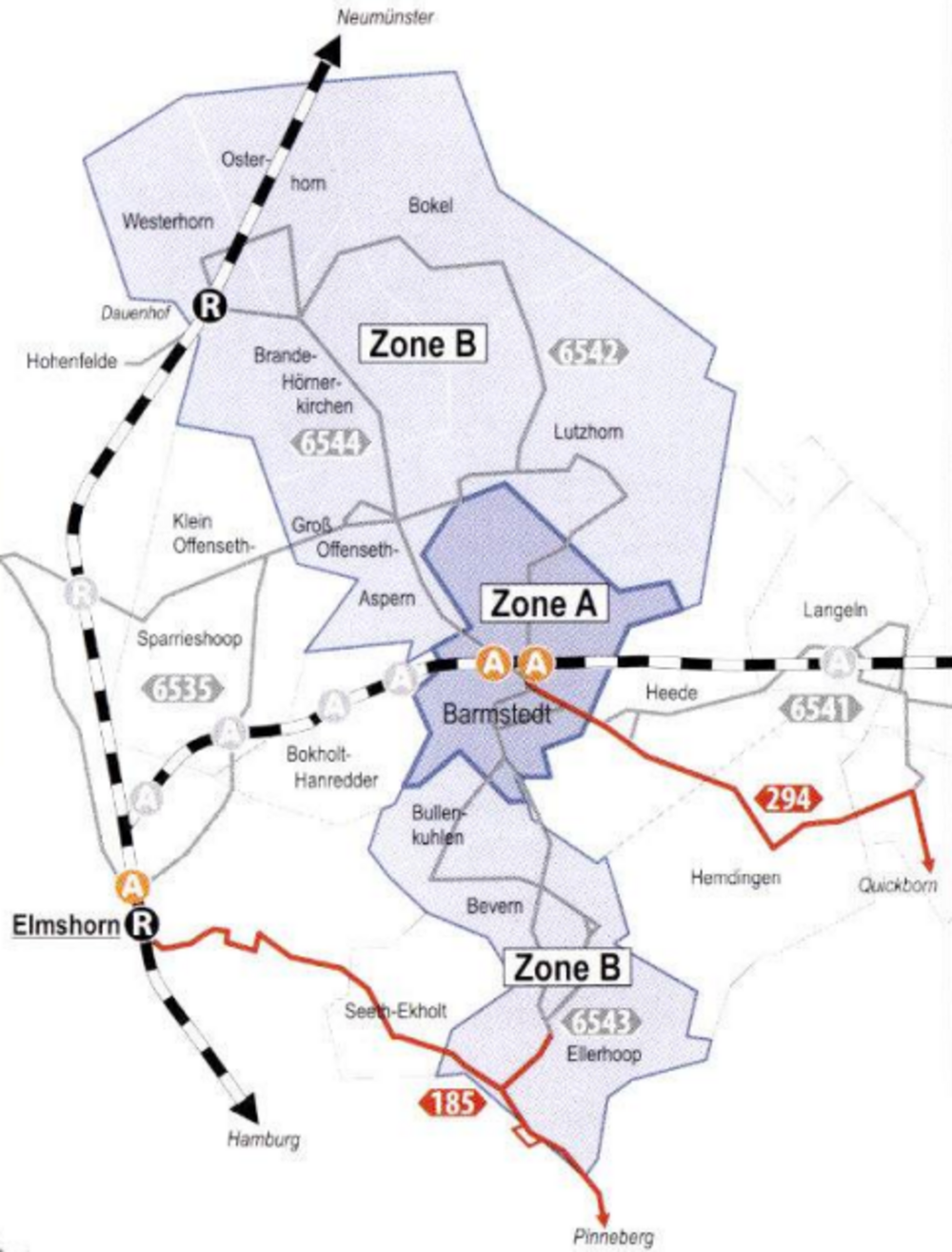 Zone A bedient das Stadtgebiet von Barmstedt.
